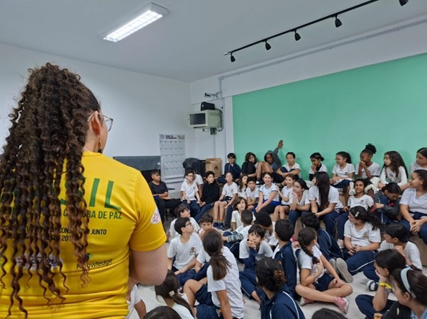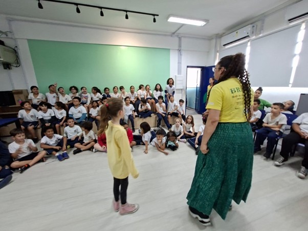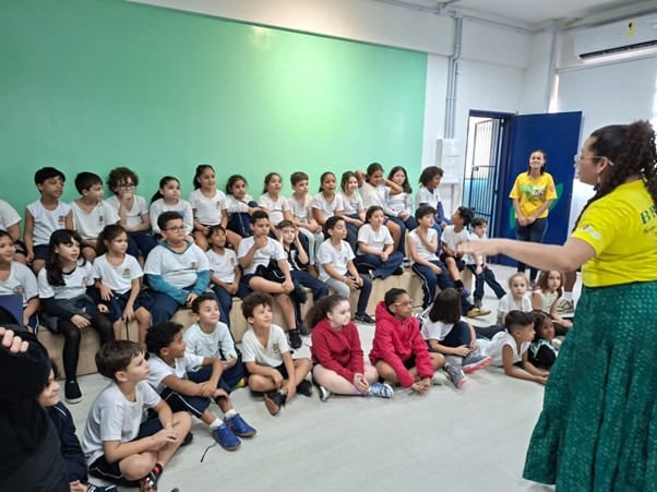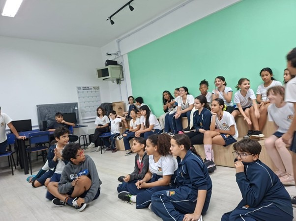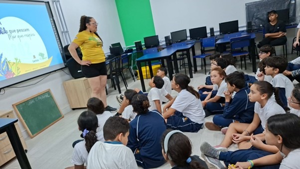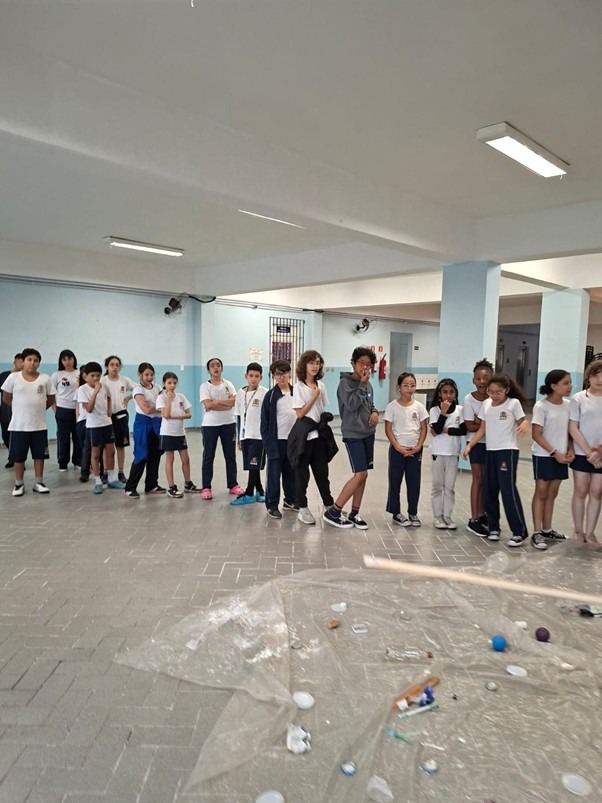 Os alunos foram divididos em grupos, conforme suas turmas e faixas etárias, participando de atividades distintas. Nas salas de aula, as ações voltadas à conscientização incluíram QUIZ de perguntas, mímica e, para os primeiros anos, a introdução de noções básicas de Libras, reforçando a ideia de que a sustentabilidade também envolve inclusão. Já no espaço aberto do terceiro andar, ocorreram atividades como a pescaria de detritos, cantigas de roda e discussões sobre o impacto do descarte inadequado de lixo e seus malefícios para a vida marinha.