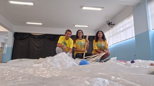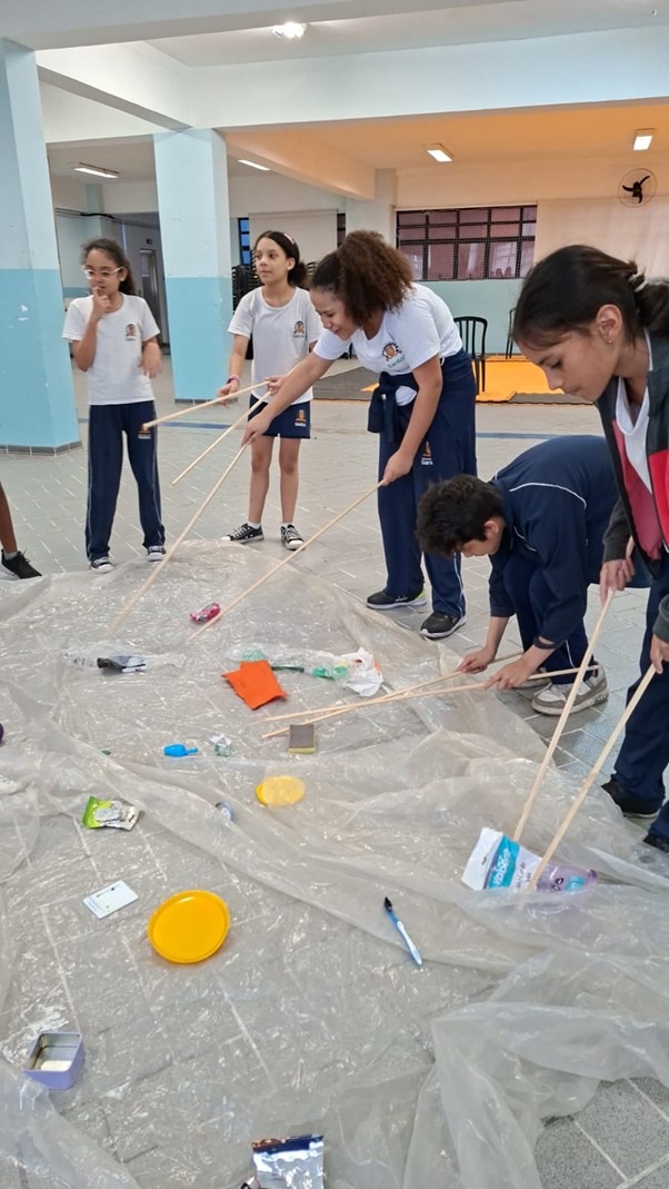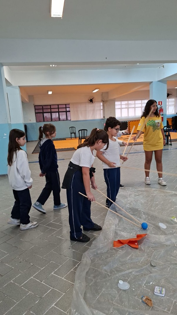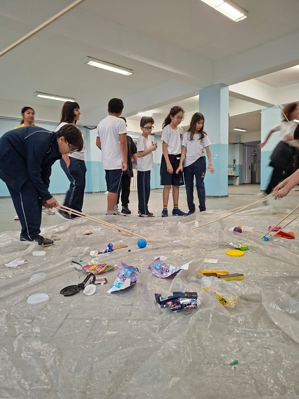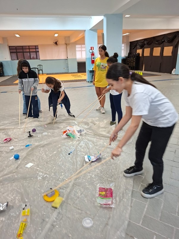 O sucesso dessa etapa esteve diretamente ligado ao uso de metodologias ativas e interativas, que uniram conhecimento e ludicidade. Entre os destaques, esteve o jogo de “pescaria de detritos”, no qual os estudantes, em vez de pescar peixes, utilizaram varas adaptadas para retirar resíduos como garrafas plásticas, sacolas, tampinhas e outros materiais que simbolizam a poluição dos mares. Cada item “fisgado” se transformou em um momento de reflexão sobre os danos ambientais causados ao oceano e sobre as atitudes que podem ser adotadas no dia a dia para minimizar o problema.