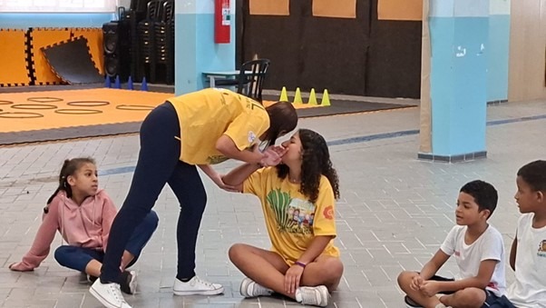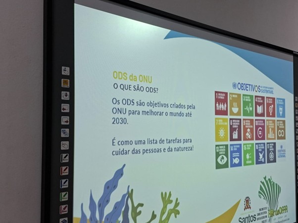 Além disso, o conteúdo da oficina incluiu uma apresentação sobre o papel da ABrasOFFA como ONG, os 17 Objetivos de Desenvolvimento Sustentável (ODS) da Agenda 2030 e, em especial, o ODS 14 – Vida na água, voltado à preservação e ao uso sustentável dos oceanos. Foram explorados temas como a geografia dos oceanos e continentes, as diferenças entre mares e oceanos, os recursos marinhos utilizados e a importância dos 3R’s: reduzir, reusar e reciclar.