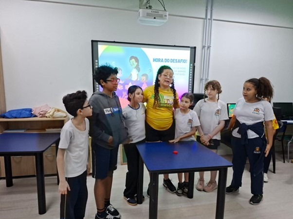 A experiência foi enriquecida ainda pela exibição de um vídeo educativo, que apresentou informações sobre o planeta, os continentes, a vida marinha e a importância da preservação ambiental.